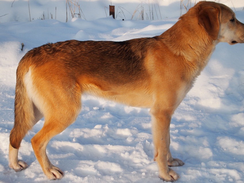 Уже темнело,гон со слуха. Я встал на тропе. Гон приближается,но уже темно. Ближе-ближе...Флейта с голосом вываливает на дорогу в 50 ти метрах от меня. Сбиваю её со следа и на поводок. Время 18.35. За 6 часов гона Флейта набегала 54км. Этот профессор мне порядком надоел! Явно старый кобель. Никак в плен сдаваться не хочет!