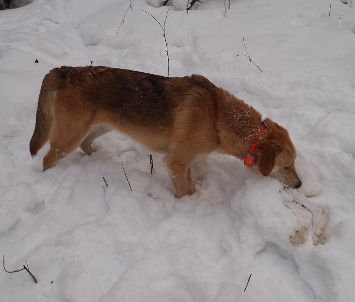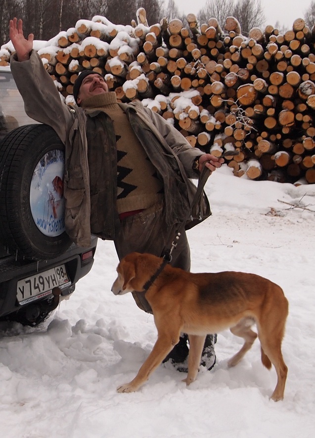 21 февраля. Засидевшиеся собаки радостно зарыгнули в машину. Поехали не далеко,в одно укромное местечко,в которое езжу только в феврале,когда ближе всё подобрано. Флейта сильно располнела,возраст и стерилизация сказываются. Набросил в 11.00. Пошёл по бураннику. В 11.20 услышал подъём и гон на меня,погнали обе сразу. Чрез 5 минут крупный беляк в 100м от меня выпрыгнул на дорогу и ай-да по моим следам от меня и скинулся. Собаки в минуте,Песня первая. Гон крутанулся и ушёл по прямой почти км. Крутит там. Я подождал и пошёл потихоньку туда,стал подравниваться к гону. Косой ходил на маленьких кружочках,путался у собак под ногами,мудрил по гонным следам. Песня несколько раз сама выправляла,идёт передом,мамаша тяжеловата,отстаёт на прямых. Гон неровный,сколы короткие но часто. Стою на просеке,гон рядом. И тут в 40 м от меня косой пулей через просеку,я и дёрнуться не успел. Собаки через пару минут,с перемолчкой. Зайчишка крутанулся,пропустил собак и назад,машет вдоль просеки- тут мы и встретились.