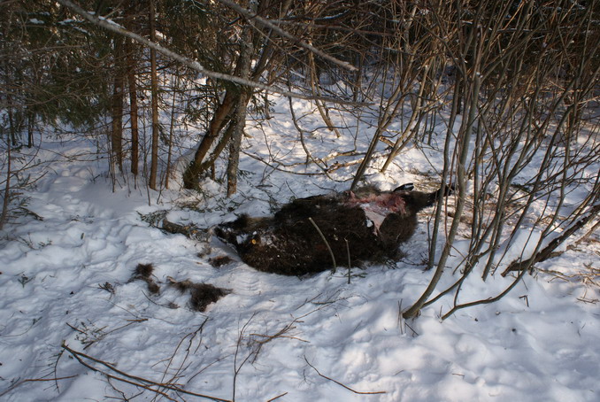 У волков задрана свинья примерно 80 кг.