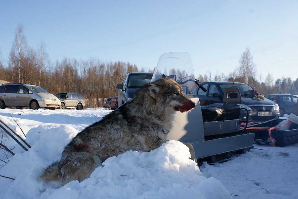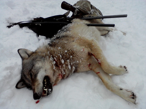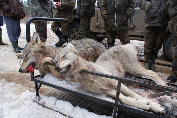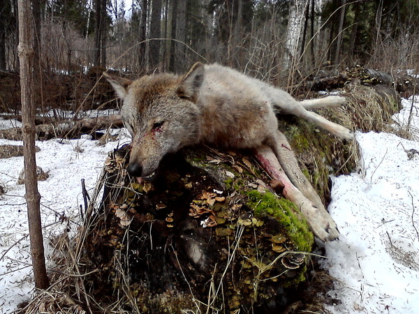 сегодня закончили облаву,я отличился,волчица матёрая добыта.
