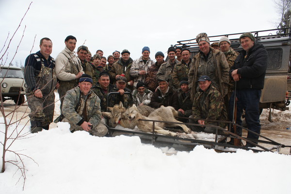 Здорово.OXOTHUK писал(а):Анатолий, первая проходила 12.02.12 в Шекснинском рвйоне у д. Пергуш, взято восемь волков. Вторую проводили 17.02.12г. в Вологодском р-не не далеко от п. Северная Ферма, там взяли трёх волков, а на следущий день в этом окладе егеря добыли ещё одного матёрого. Проводили 19.02.12г. ещё одну на границе Вологодской и Ярославской областей, обложили пяти волков, но ночью они вышли из оклада. Шекснинские провели сами одну облаву и добыли ещё трёх волков. Вот такой неплохой результат охот на волка в феврале.