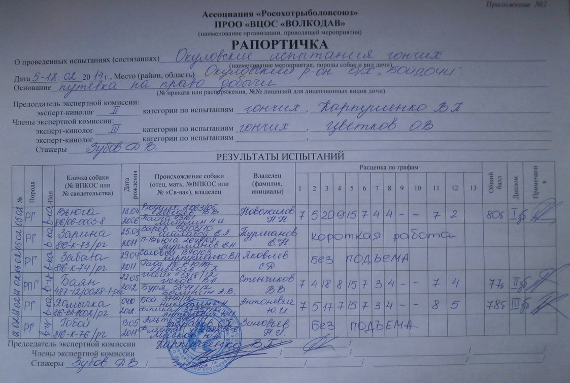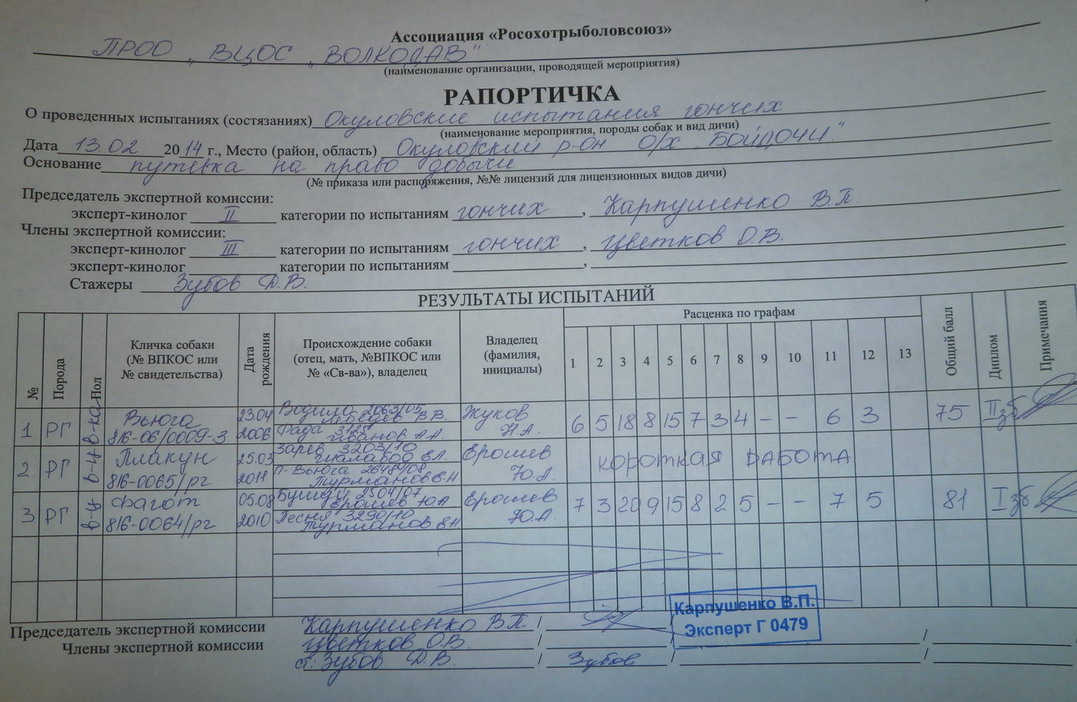 В феврале месяце в Окуловском р-не ,прошли очередные испытания гончих собак,предлогаю вашему вниманию рапортички с результатами.В ипытаниях приняли участие владельцы с гончими с г.Москвы,п.Пестово,г.Окуловка,п.Неболочи,п.Крестцы.