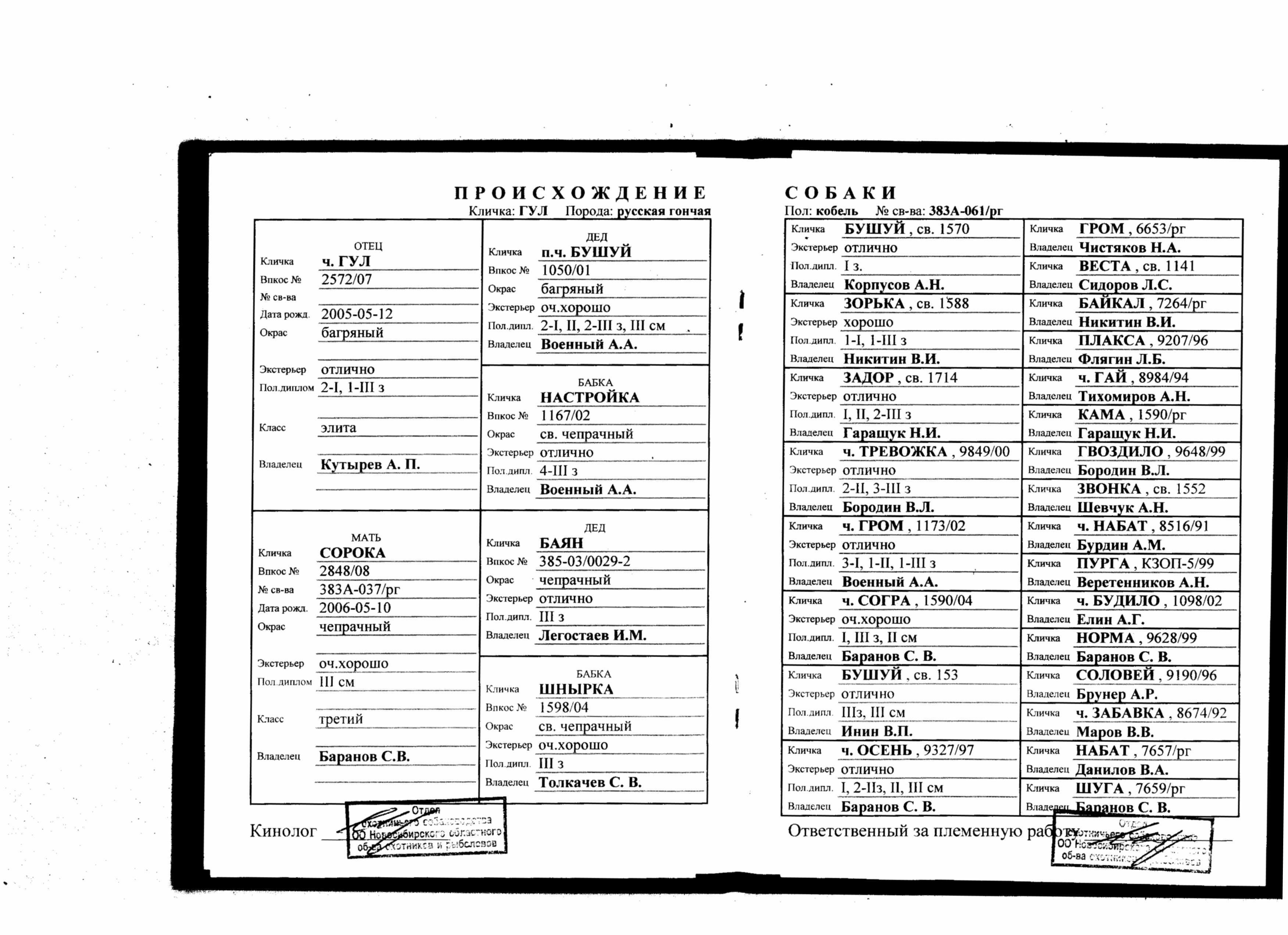 - Почетный гончатник клуба. Эксперт-кинолог II категории