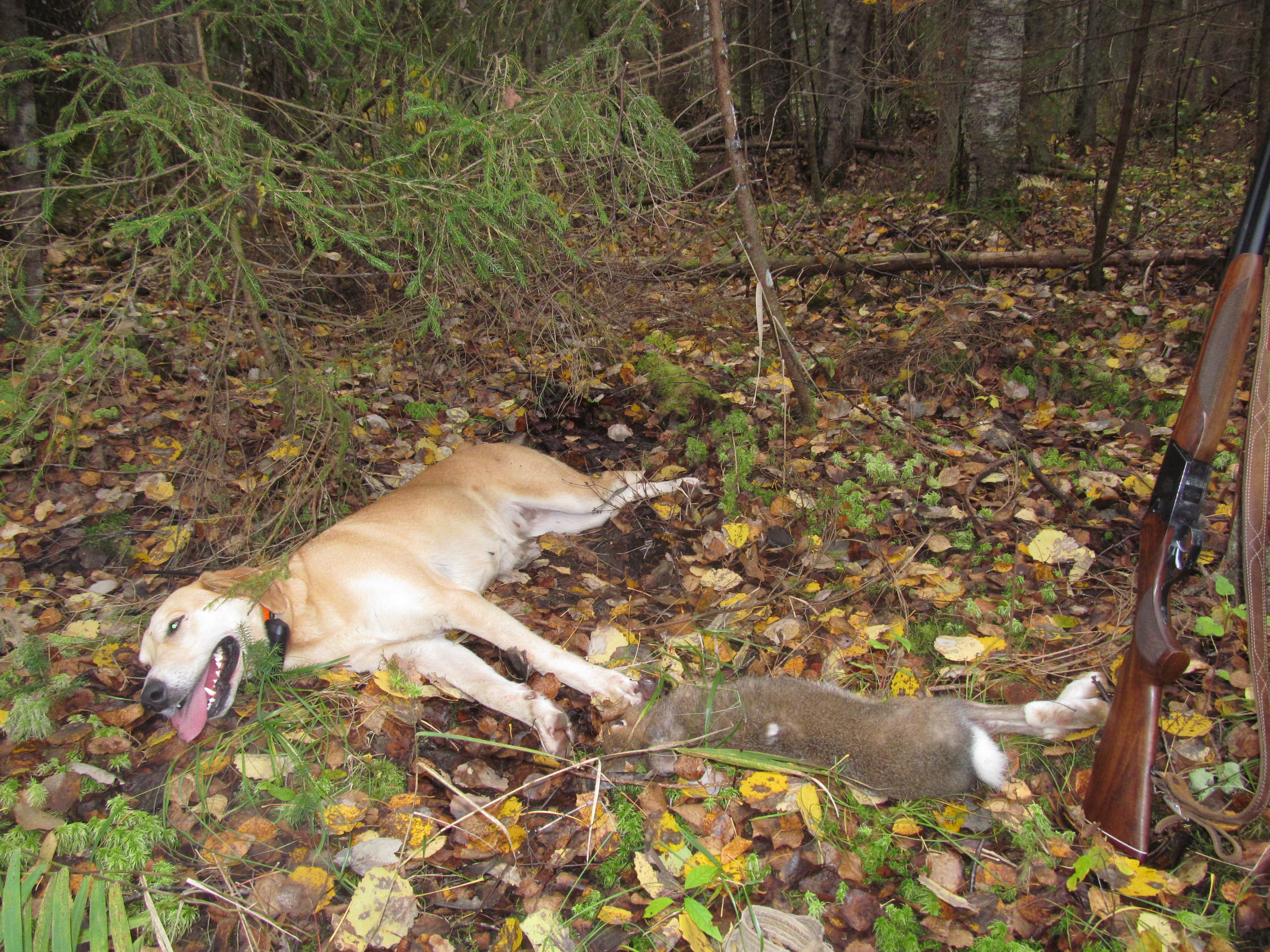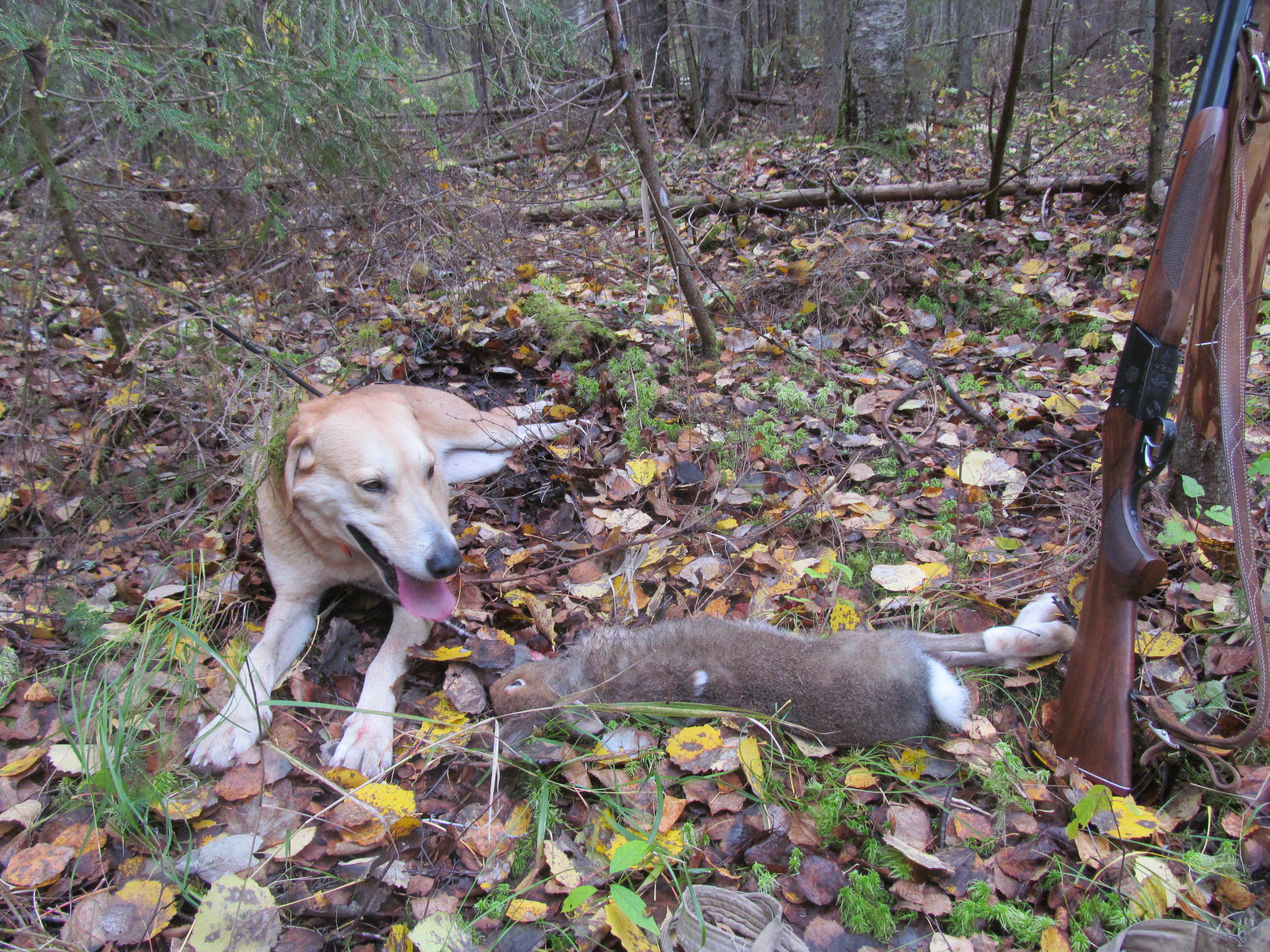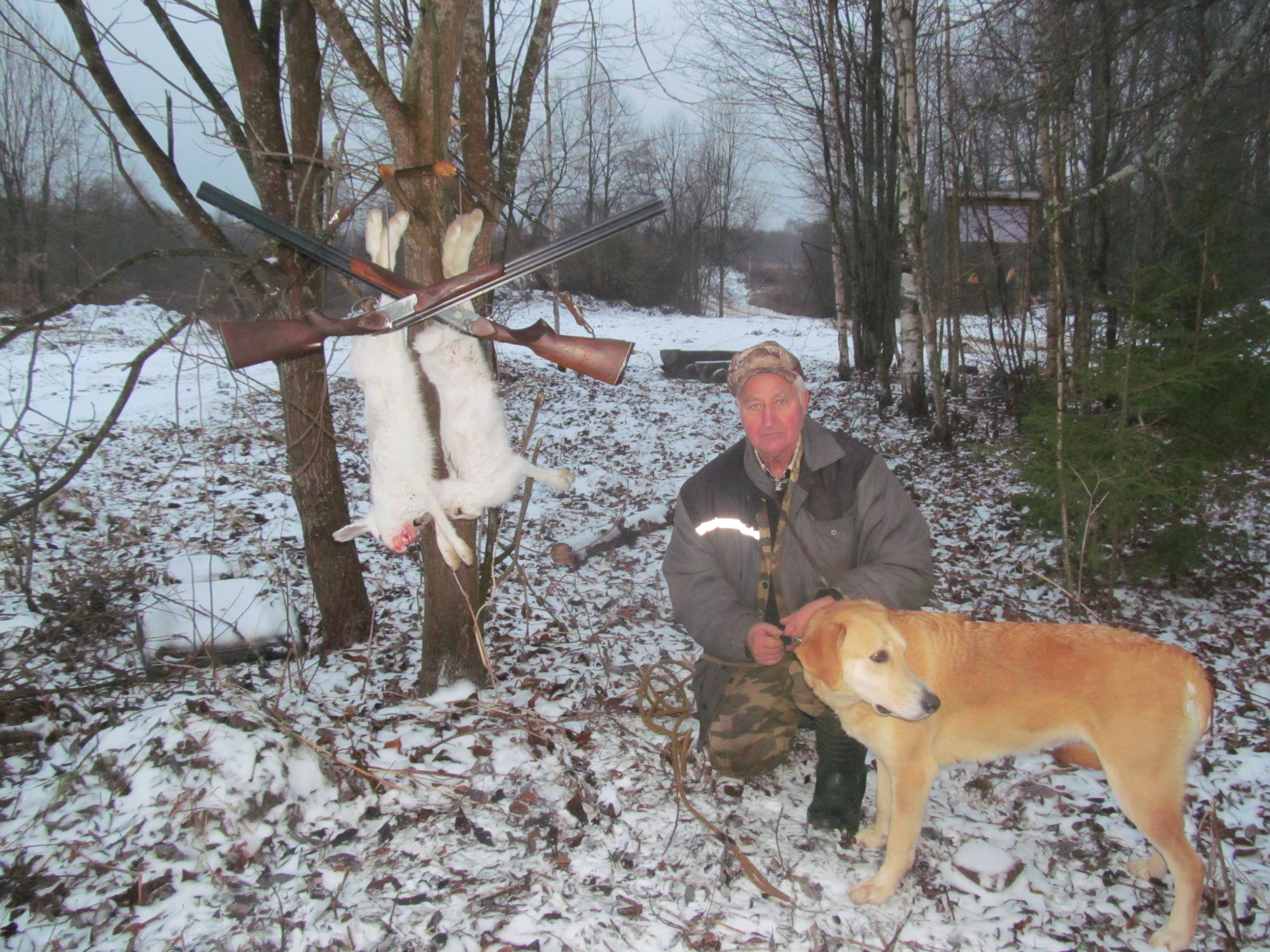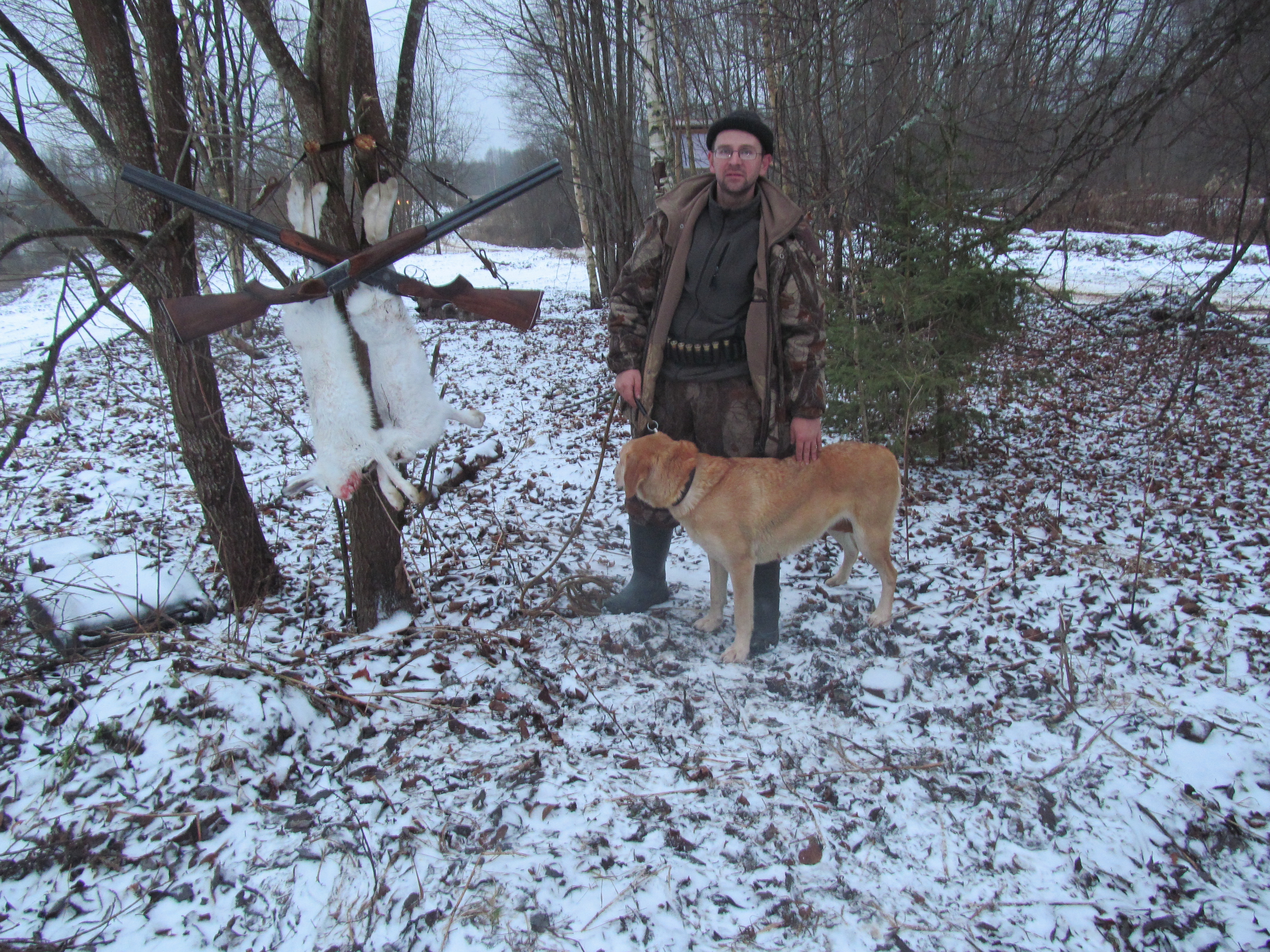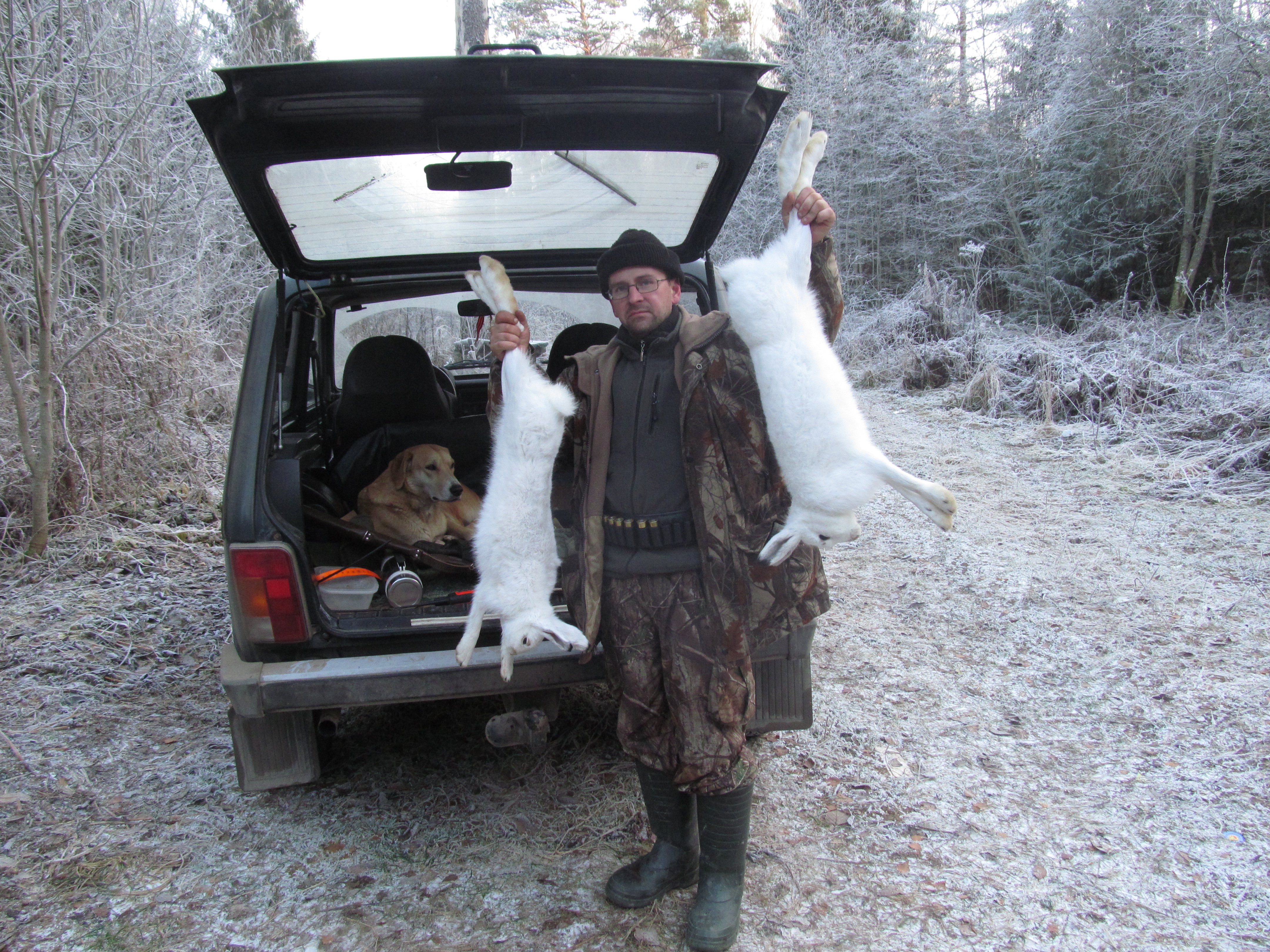 Обычно в течении сезона я несколько раз выбираюсь на восток области,но в этом году лишь один раз удалось выбраться на пару дней в Волховский. Где было взята пара зайцев. Остальные все добыты в Тосненском районе.