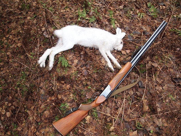 Гон крутанулся у подъёма,я на лёжку. Но слышу,гон по прямой,удаляется. Подумал,что лучше бы по скорее косого добыть- тропа жёсткая,собака лапы намнёт. Смотрю,гон на дорогу и по ней,по прямой,мимо машины и дальше-дальше...вот уже 1.6км и всё по дороге. Бегу туда. От машины отошёл метров 100 и слышу,гон уже приближается назад. Стою на дороге и тут вижу,далеко-далеко,метров 500,бежит точка и приближается. Никак косой возвращается! Одним прыжком прыгаю на обочину,за дерево. Точка всё ближе,точно косой- чешет во все лопатки своим следом. Подпустил по ближе,метров 10-12...Готов!