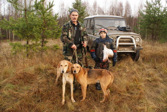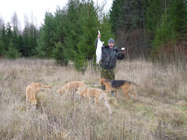 Мало теперь там зайца! Очаговый какой-то. Я две недели в отпуске по тем местам носилась с Забавкой+-. Только пять! работ! плакать хотелось.И то только в двух местах. Расстояние между ними около 15км! Все по кругу обшарено безрезультатно.Правда в одном из этих мест( по Назии нашли такой уголок) три гона за четыре часа. Перерыв между гонами около 10мин.Поднимала из-под ног и это после предидущего гона! выстрелов! шума! Даже чайку с бутербродом не успевали "на кровях" перекусить. Двух взяли, с третьего сняла на втором кругу. Пришли туда уже после 12 часов.Заяц облежавшийся.Шельма писал(а):Рома вот и мы туда больше не ногой,хотя жаль там заяца много