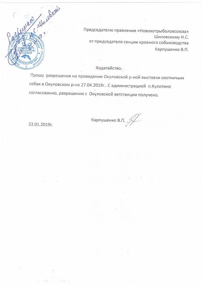 25.04. 2020г. В п.Кулотино, в сквере по ул. Ленина ,состоится Окуловская р-ная выставка охотничьих собак. При себе иметь справку или свидетельство на охотничью собаку ,ветпаспорт с отметкой прививки от бешенства.Начало регистрации и ветконтроль в 9ч00мин, начало выставки в 10ч.00мин. Стоимость участия 350р за единицу.Добро пожаловать!