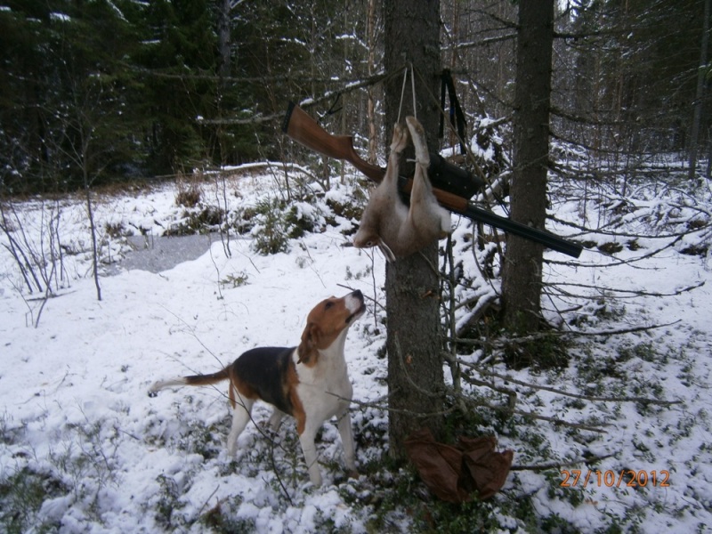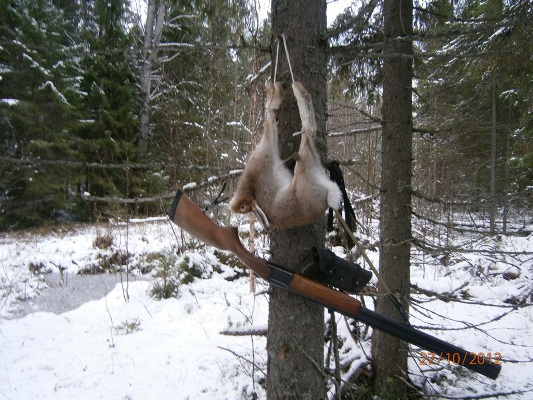 Наконец получилось сфотографировать зайца Арфы (три недели не было фотоаппарата), а так за две недели выжловка довела до выстрела 3-х зайцев.
