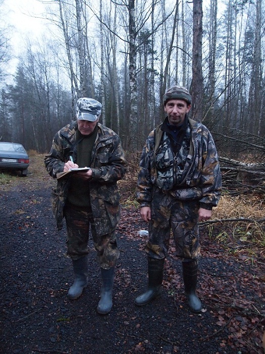 Дело случая. Миша должен был идти в этот день уже не первый, он в первый день был первым в первой комиссии. И остался ждать у машин, боясь, что его выжлец поднимет шум на привале, если будут работать другие гончие. Для меня это было в руку. Приехавшие корреспонденты нашли не только автомобили, но Михаила. Который их проводил к нам в лес. А дальше личностное обаяние. Идти им было два километра.