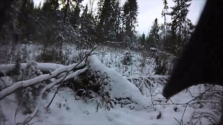 Через минут 20-ть, помычка на болоте(вода по щиколотку, что там делал заяц не понятно… принимал водные процедуры наверное) Гон 5 мин, перемолчка, гон 3 мин перемолчка и все … скололся не нашел.
