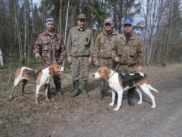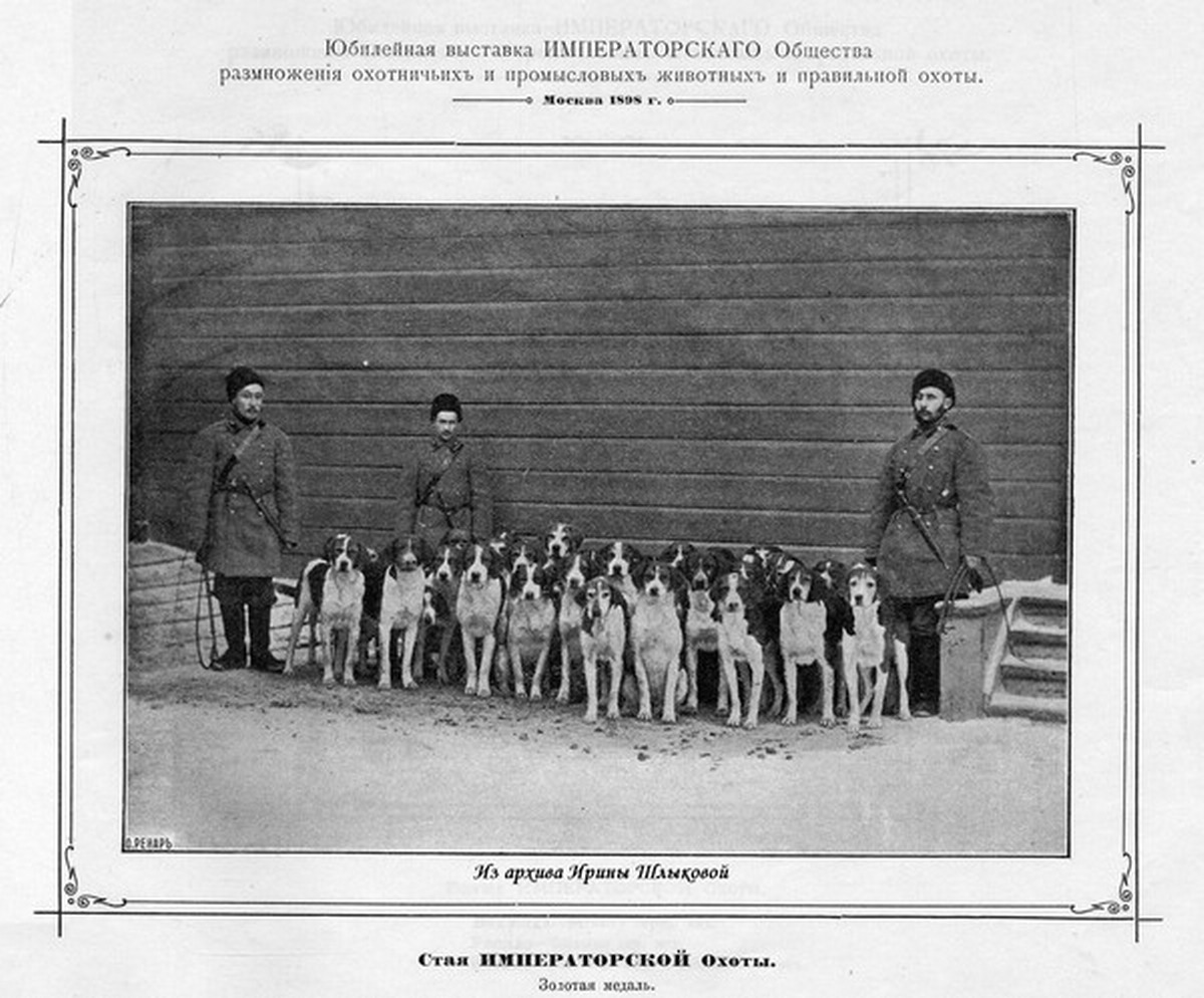 Гончие Гатчинской охоты. Гатчинская англо русская стая много раз получала золотые медали на выставках в Москве и Петербурге. Неоднократно к ней приливалась кровь различных русских, англо русских гончих, а в последующее время - кровь вновь выписанных из Англии фоксхаундов. Гончие были рослыми, с отлично спущенными ребрами, хорошей мощной колодкой, прочными сухими конечностями. Под влиянием фоксхаундов головы собак постепенно стали более короткими, уши длиннее, обрез морды - почти квадратным. Гон собак стал носиться круче. Собаки из этой охоты попадали во многие другие стаи и всегда становились удачным племенным материалом, улучшая костяк, мощь и полевые качества.