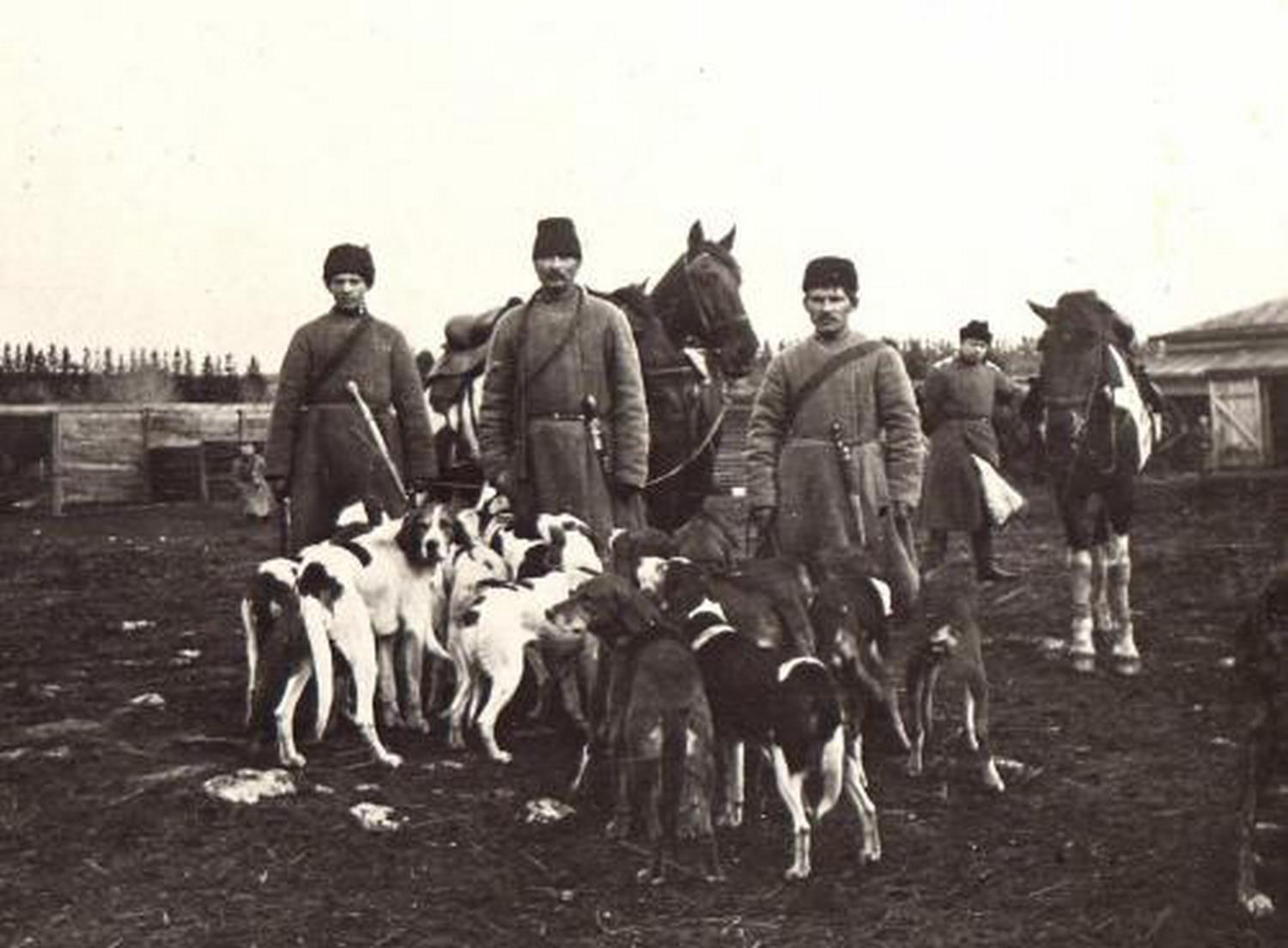Амур Сковзгирда B.C. (г. Глухов); Бушуй Погорелова (г. Харьков); Тунгус Малолина (Москва); Рыдай и Трубач Лукьянова П. П. (Воронеж); выжловки Забава и Заварка Маркова Б.И., Пороша Погребного (Москва); Чайка Лукьянова П.П. (Воронеж); Фишка Муравьёва (Москва).
