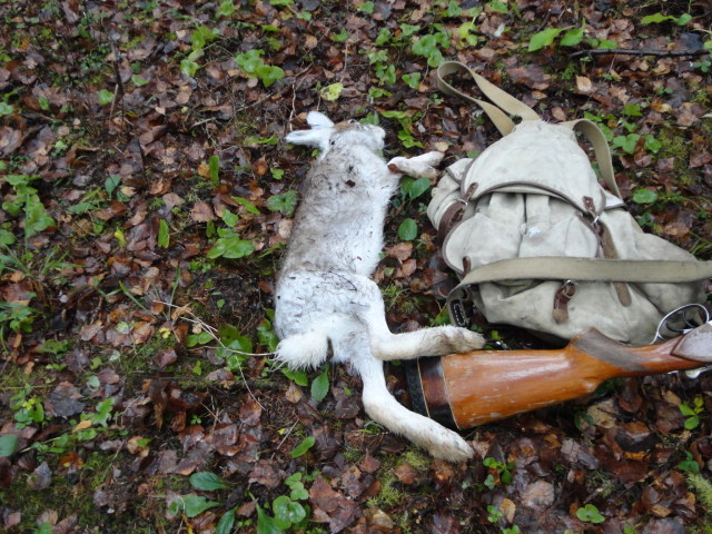 У него был шанс, он его использовал - молодец. Метров 900 от этого места, весной, когда ходил на глухариный ток, поднял "косопузого" , забил в навигатор точку. Иду туда. Выхожу прямо на неё. И вдруг 200м в стороне (по навигатору) подьем. Через 5мин. заяц выскакивает на меня. В голове мысль, собаке нужен стимул, буду брать. Вскидываю ружье, выстрел.... дошёл. Дальше как водиться лапки ушки, не большёй отдых и домой.