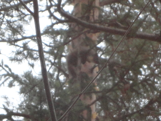 26-го опять по зайке. Всю ночь шел дождь. Прекратился только утром, на рассвете. День без подъёма. Под вечер встретил коллегу, гончатника, тоже без подъёма. Мы правда нашли белку и после обеда, Астра, загнала куницу на дерево. Фотик слабоватый, поэтому