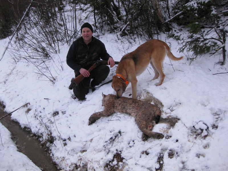 Сегодня Юхани Сувато прислал ссылку на ролик с охоты гончей. Где его потомок срабатывает рысь.