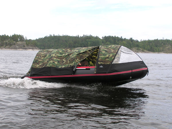 Укомплектован тентом на всю длину (удобно ночевать на воде). Также его можно разделить на носовой - ходовой, + транцевые быстросъёмными колёсами.