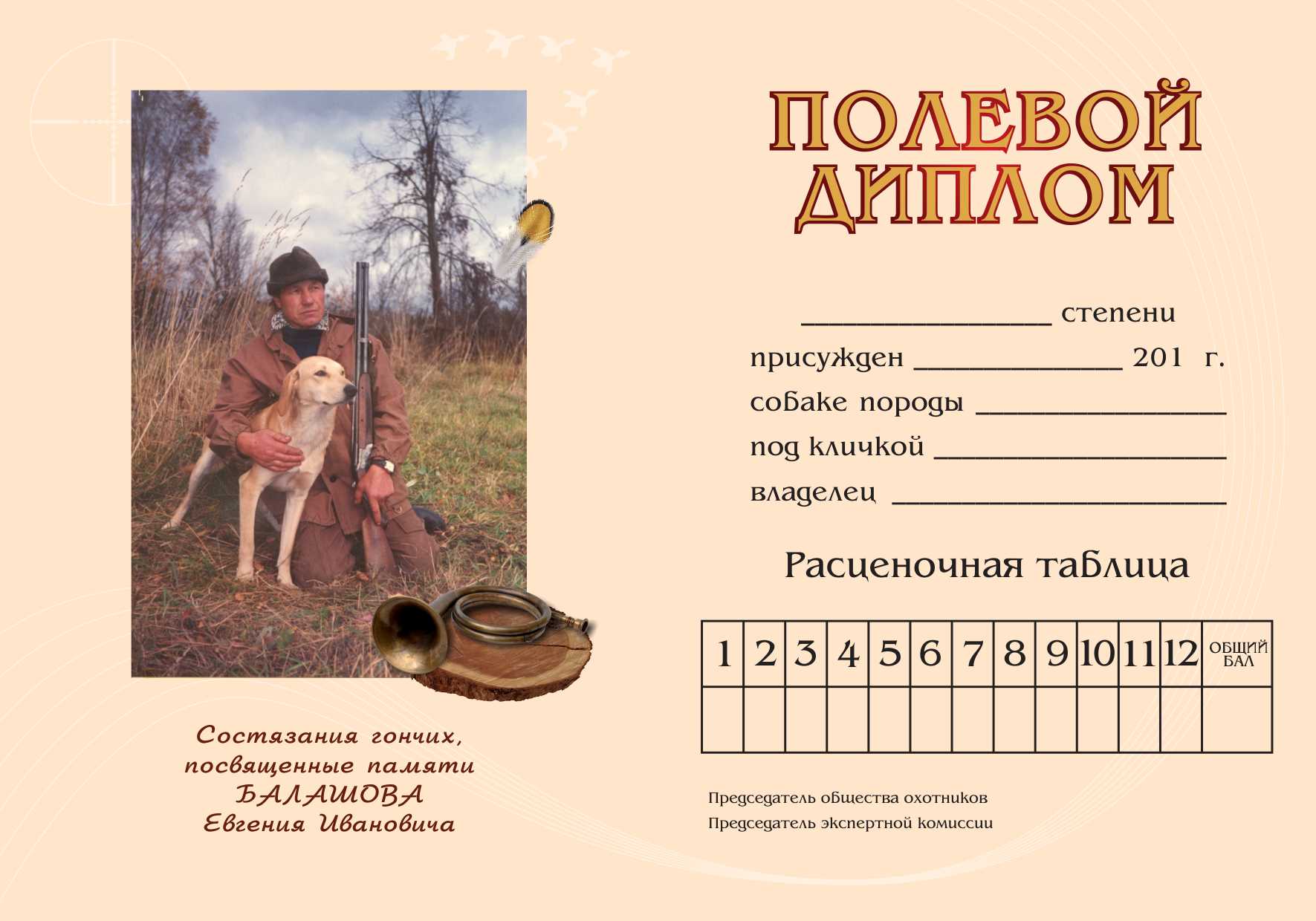 Отчет о состязаниях гончих собак, памяти Балашова Е И.