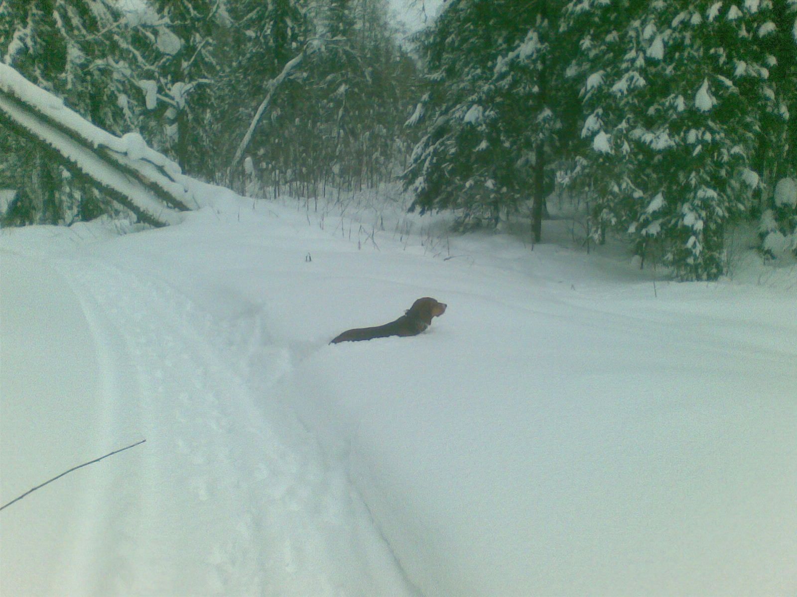 Привезли собаку "как порядочного" на снегоходе к зайцам в гости.