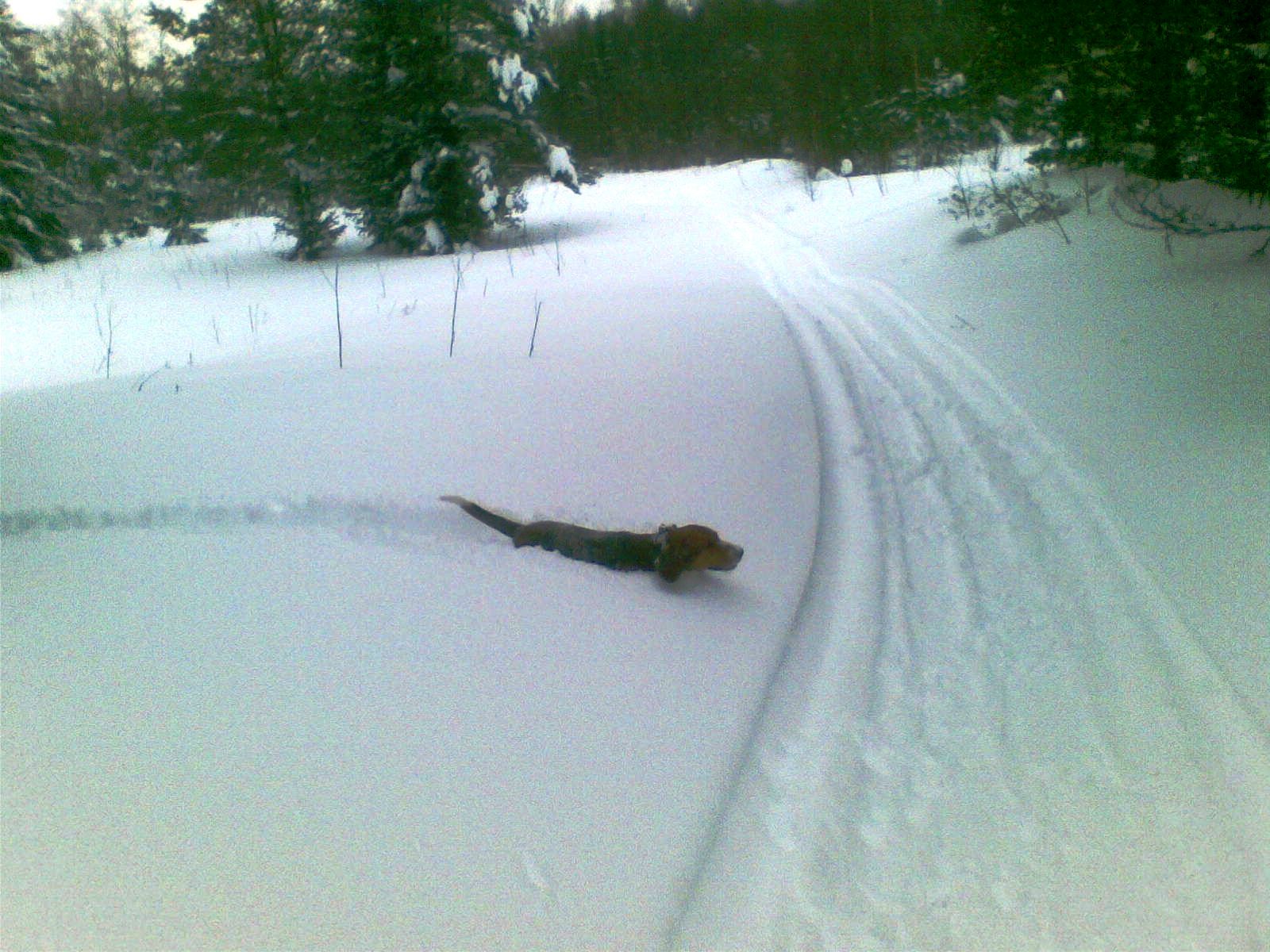 Относительно работы по снегу. По белой тропе гончатники охотятся не менее половины сезона. Существует мнение, что гончей получить диплом по белой тропе проще, поскольку можно работать «на глазок», не чуя запаха следа зверя. На самом деле отдача голоса гончей тесно связана с этим запахом – как по чернотропу, так и по белой тропе.