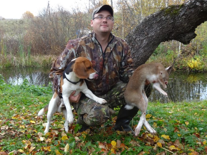 Я сейчас в отпуске,за это время на охоте были с приятелем пять раз.Из этих охот только один раз не подняли зайку,но зато Заграй зацепил рогатых, нагонялся вдоволь и только тогда пришёл,а потом зацепился за жировку зайца,начал копать,но пришлось его снимать,т.к.было уже поздно и мы всё равно не успели бы этого зайку добыть,но бирку на дерево повесили!!! Эти охоты мы посвящаем обследованием новых мест!!! С погодой нам не очень повезло,всё на дожди нарываемся, хотя Заграй гоняет по такой погоде неплохо,правда копает долго,пока зайца не поднимет,но это объяснимо-след всё-таки вымывается. А вот в четверг, так вообще, копали-копали,а когда подняли и Заграй погнал,пошёл такой ливень,что"Мама не горюй", думаю, ну всё гона не будет,однако погоняли не плохо!!!Только вымокли ,но это мелочи жизни. Всем удачи и хороших охот!!!
