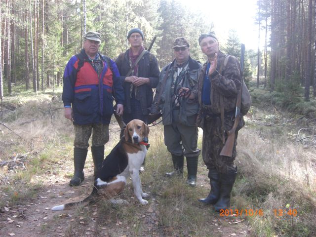 Вчера гоняли пять часов, практически без сколов. Начали в восемь утра, в час дня я Забаву сняла на сколе. Подстилка лесная вся промороженная. Мох тоже мороженный, под ним вода. Подойти под гон тихо, совсем невозможно. Грохот стоит. Заяц молодой, серый, но ушлый-зараза. На чистину не выходит, идет колками еловыми. Два раза протопал рядом, метрах в десяти,но не видно. Не стреляла. В третий раз вышел вдалике. Запуляла в угон, но похоже под хвост. Сиганул после выстрела еще прытче. И потом еще два часа гоняли. Не взяли. Лапы у Забавки распухли, пальцы. Подрать, не подрала, но размочила хорошо.