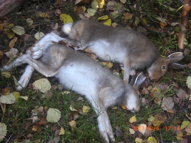 А мы пока без зайца. В субботу пошли с Забавкой. Бродили, бродили, зайца не нашли. Погода-так себе, то дождь моросит, то солнце выглянит. Я в лесу нахулиганила. Рябчика стрельнула, пока Забаву ждала. Перья кучей, а рябчика нет! Забава прибежала, вместе искали, все кругом облазили. Так и не нашли. Странно.