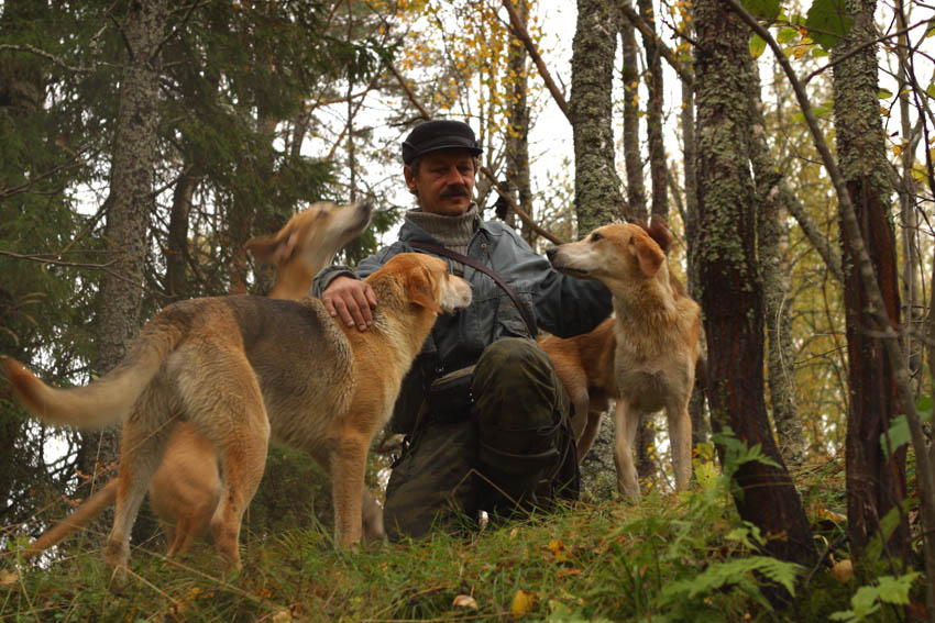 Смотрю, они ищут, ищут, ищут: Морда к морде. И вдруг натекают на пахучий волнующий след. Проверяют. И вот, нос ещё сзади, не может оторваться, а корпус, ноги уже в погоне. Уже пошли вперед. Не отдавая голос. Рывком! На гон.